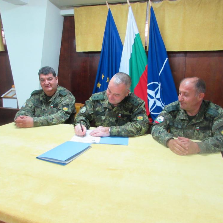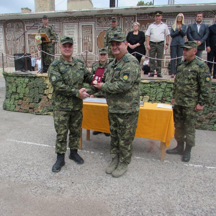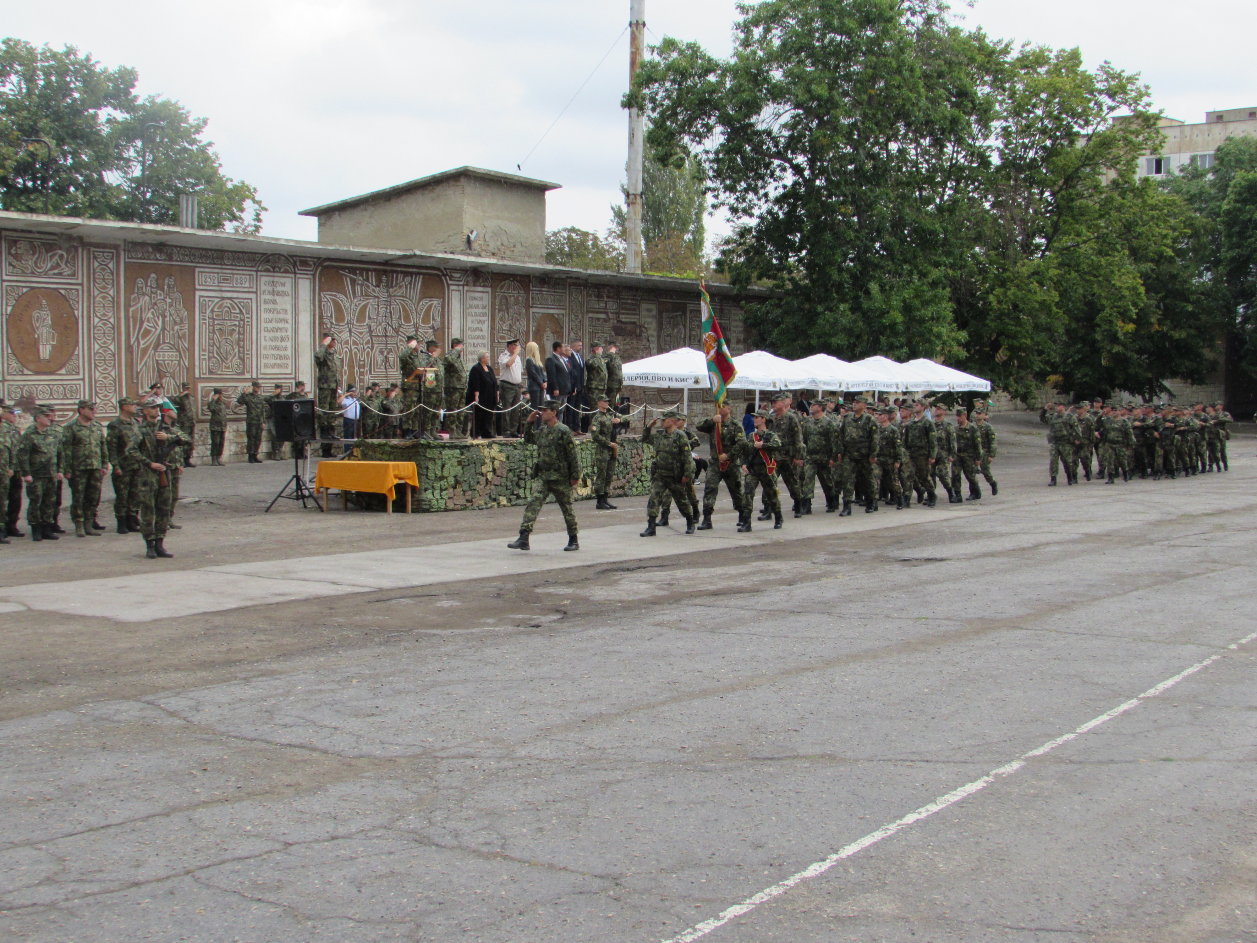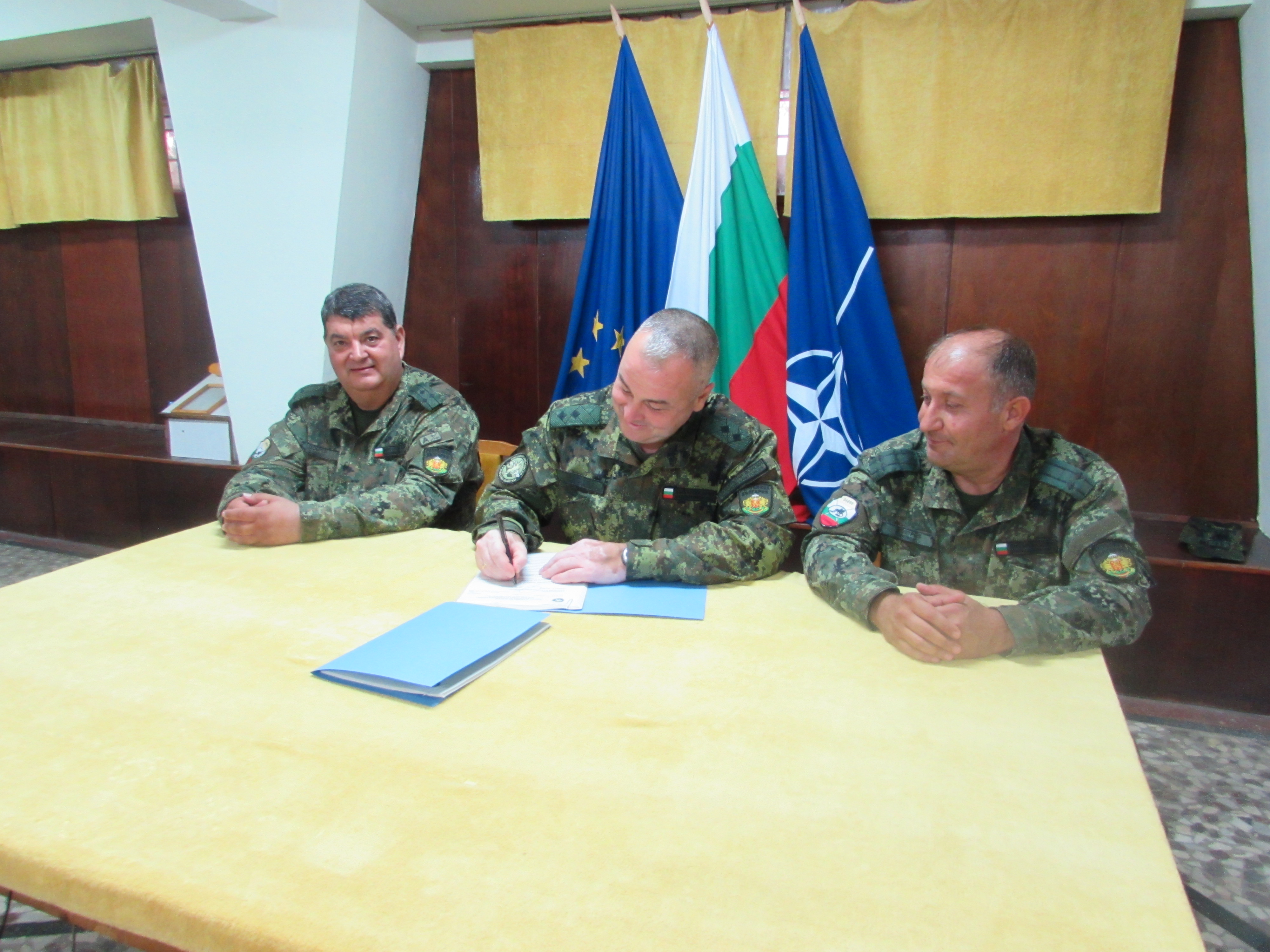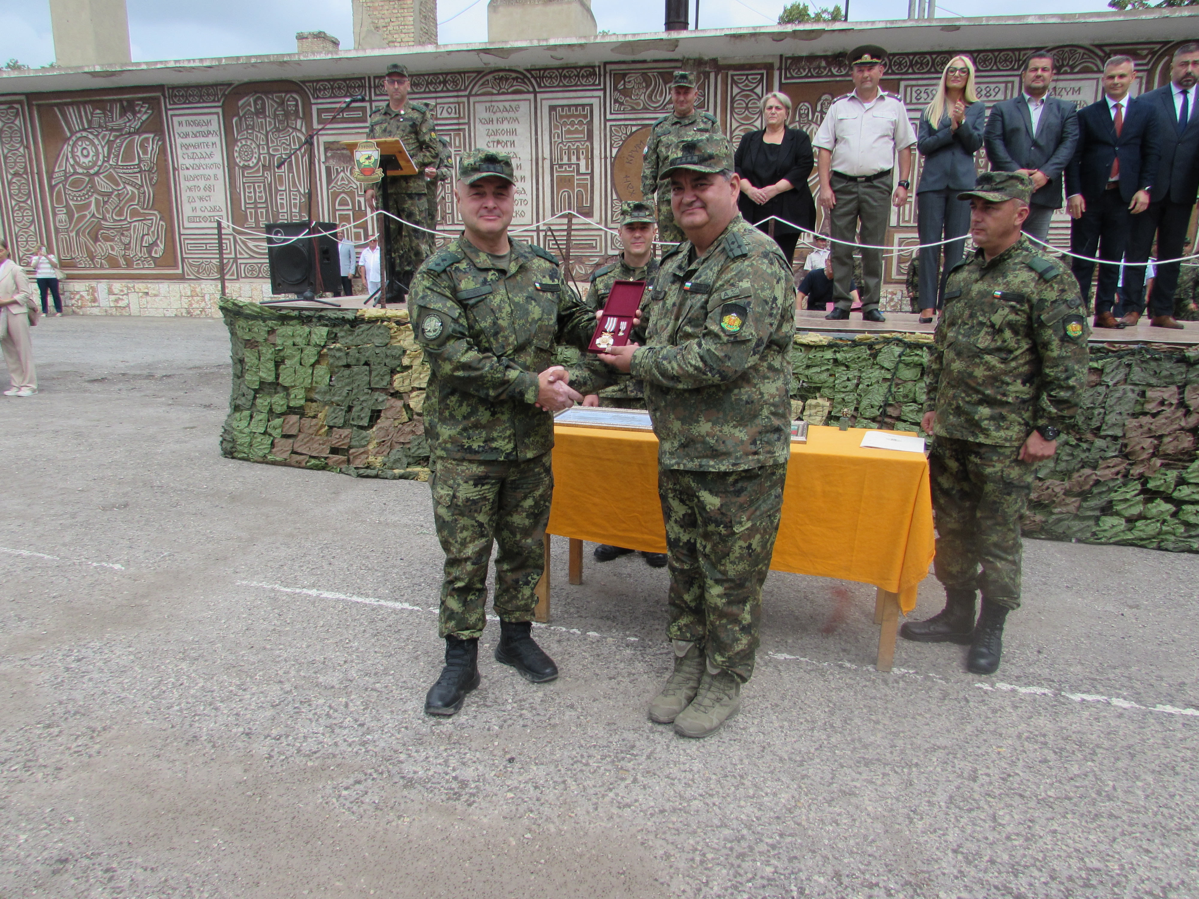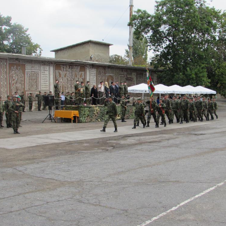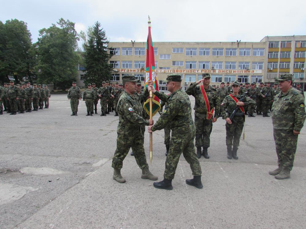 В присъствието на командира на Сухопътните войски генерал-майор Деян Дешков полковник Добромир Добрев предаде бойното знаме на формированието на новия командир подполковник Мирослав Димитров.