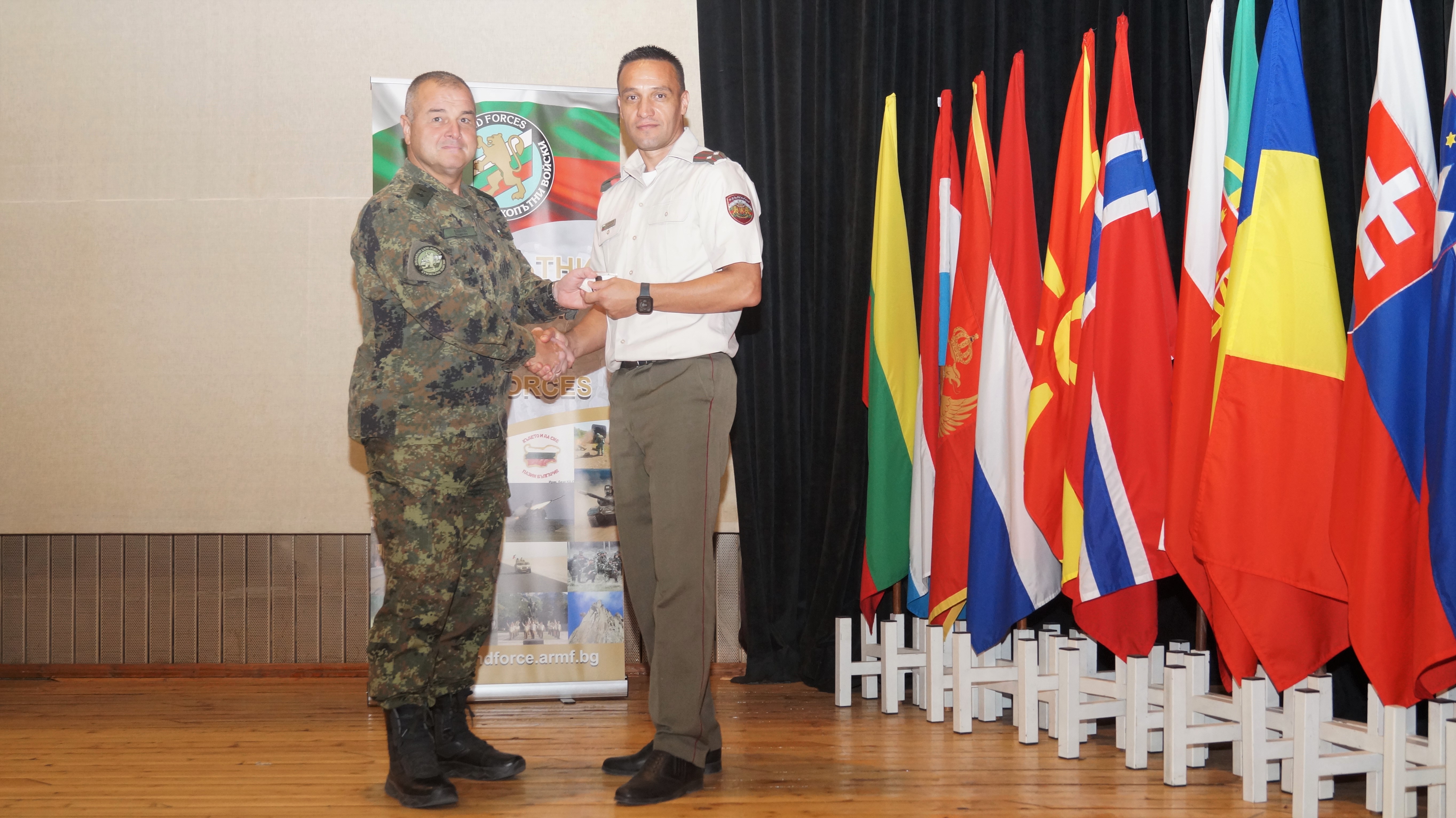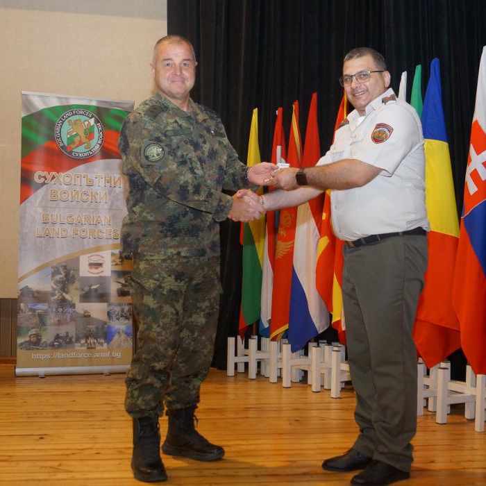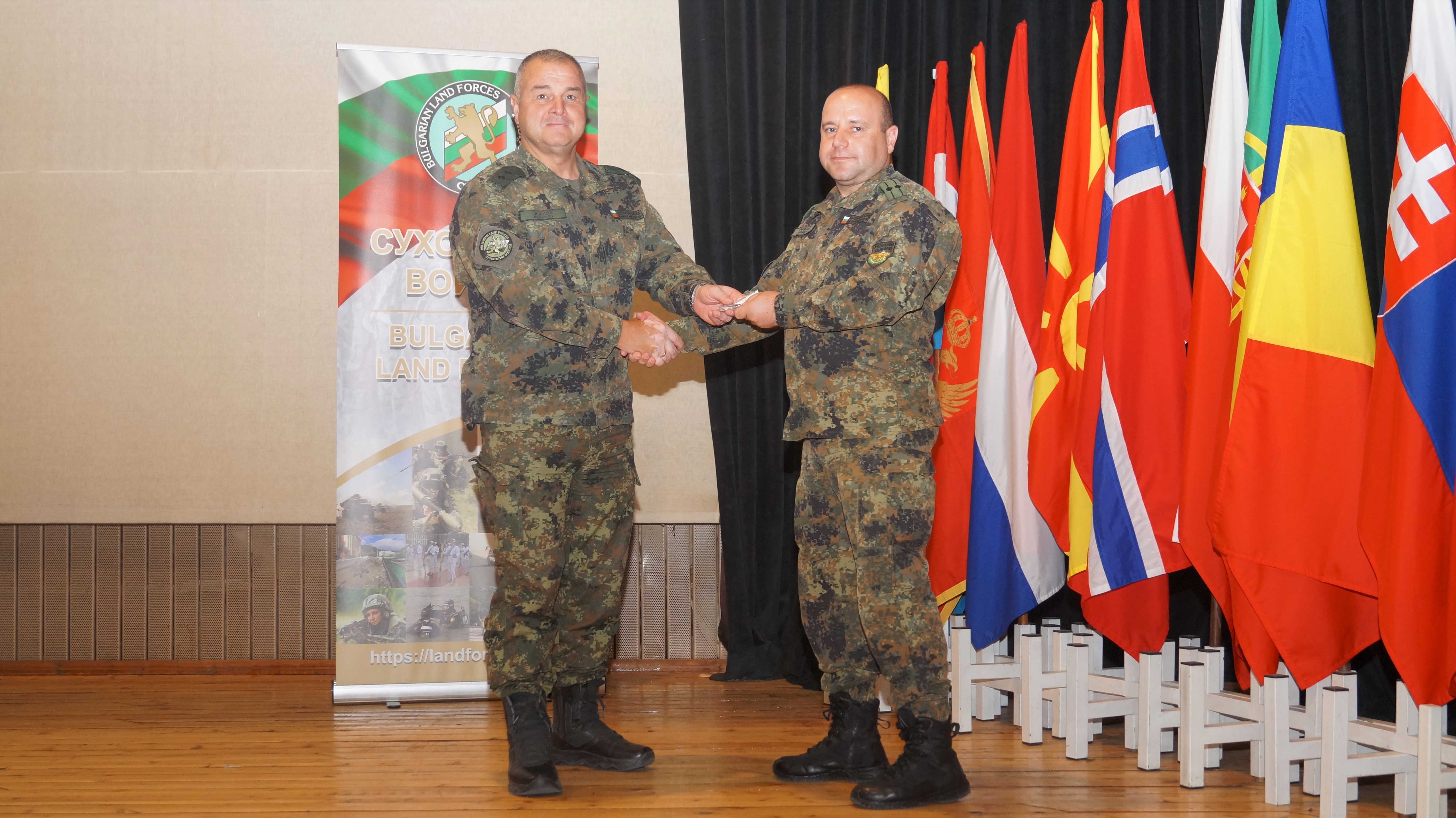 Генерал-майор Деян Дешков връчи новите пагони и нагръдният знак на Командването на Сухопътните войски на новите колеги, пожела им спорна работа, успех и напред.
