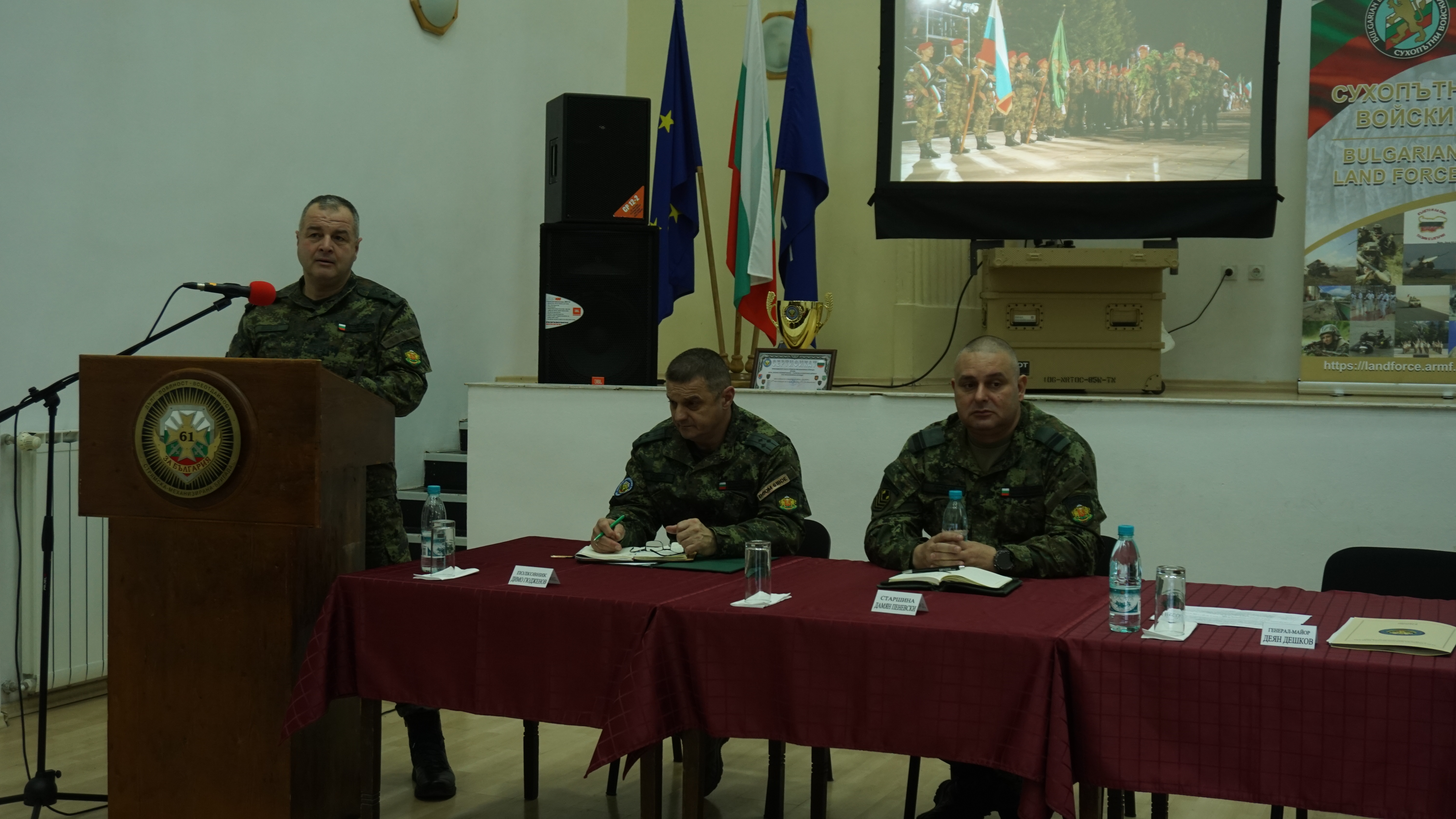 Днес, 17 януари, във Военен клуб - Карлово, се проведе „Анализ на подготовката в 61-ва механизирана бригада през 2024 г.“, на който присъстваха командирът на Сухопътните войски генерал-майор Деян Дешков и главният сержант на Сухопътните войски старшина Дамян Пеневски.