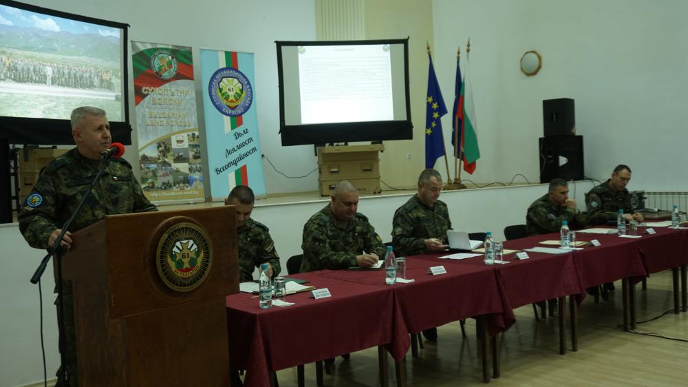Началникът на щаба полковник Калин Карадимов направи анализ на подготовката на щабовете и формированията от състава на бригадата, а заместник-командирът по логистичното осигуряване полковник Тодор Манчев разгледа въпросите по окомплектоването с личен състав и направи разбор на запасите от материални средства.