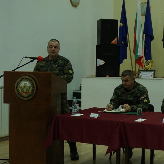 Заместник-командирът на бригадата полковник Димо Гюдженов анализира проведените учения, участието в международни учения и тренировки. Той акцентира върху придобиването на нови образци въоръжение, техника и модернизацията, състоянието на учебно-материалната база и приноса на формированието към националната сигурност в мирно време.