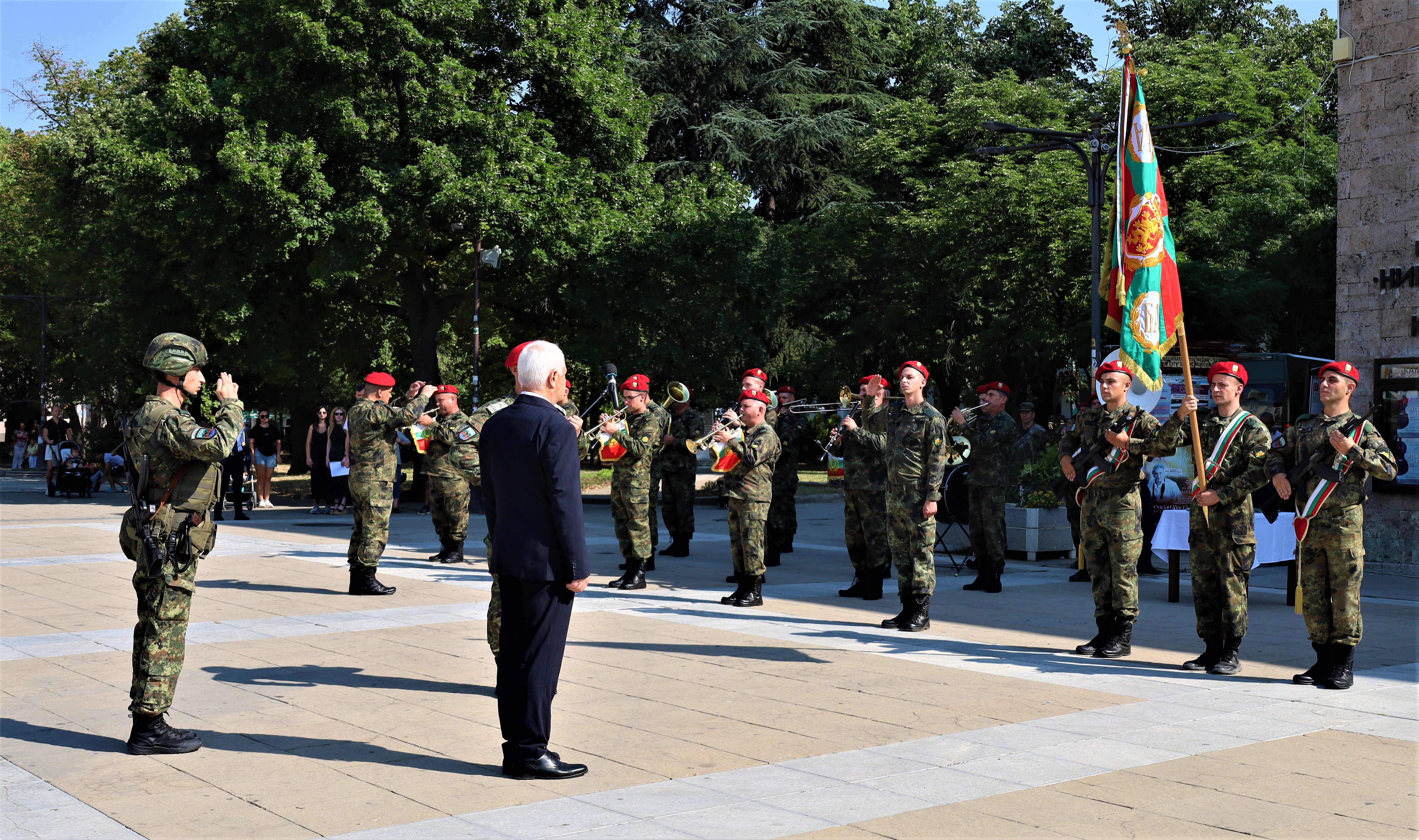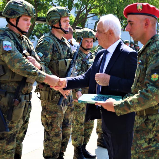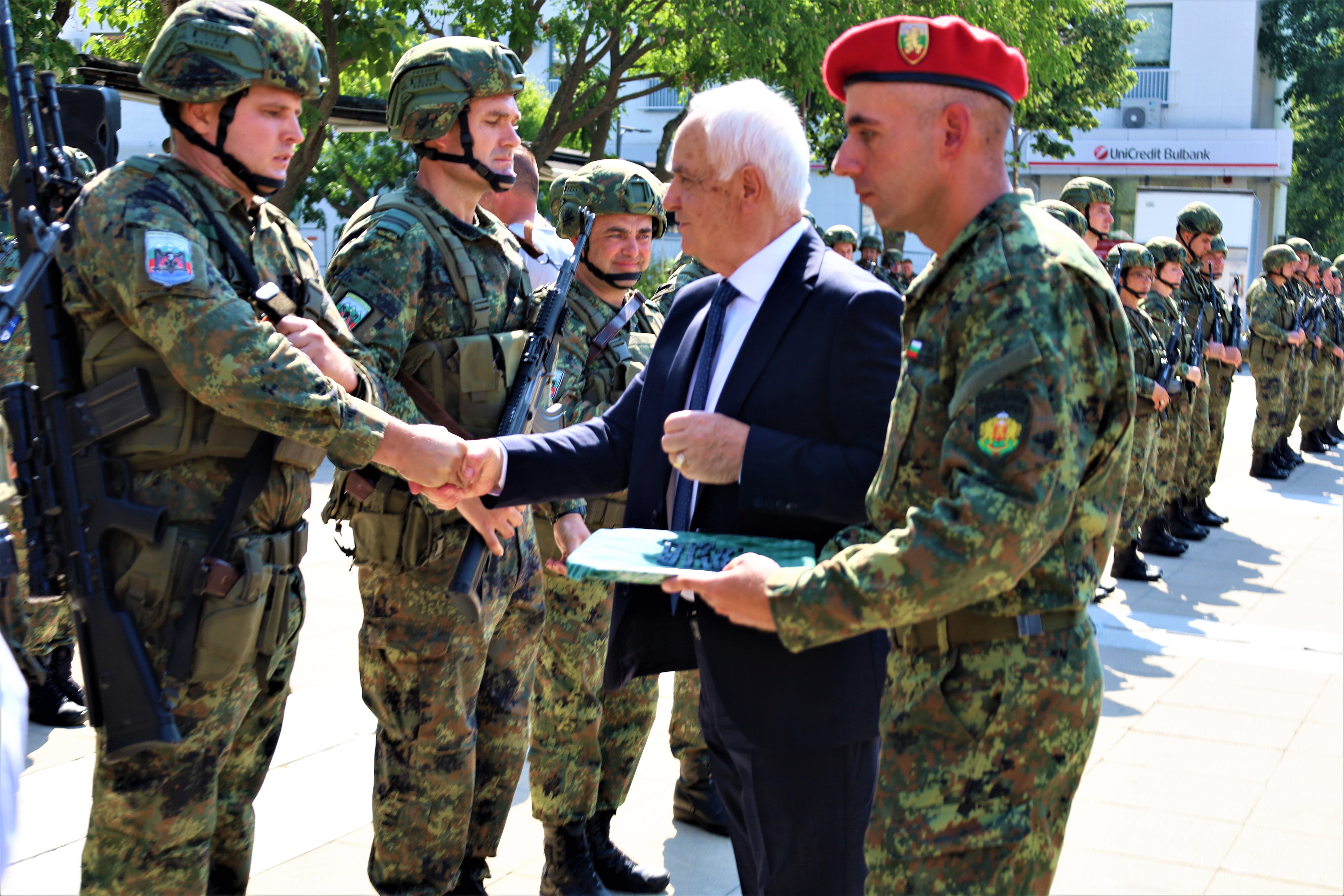 На посрещането присъстваха още командирът на Съвместното командване на силите генерал-майор Станимир Христов, командирът на Сухопътните войски генерал-майор Деян Дешков, кметът на Община Благоевград Методи Байкушев, областният управител на Благоевград Георги Динев и др.