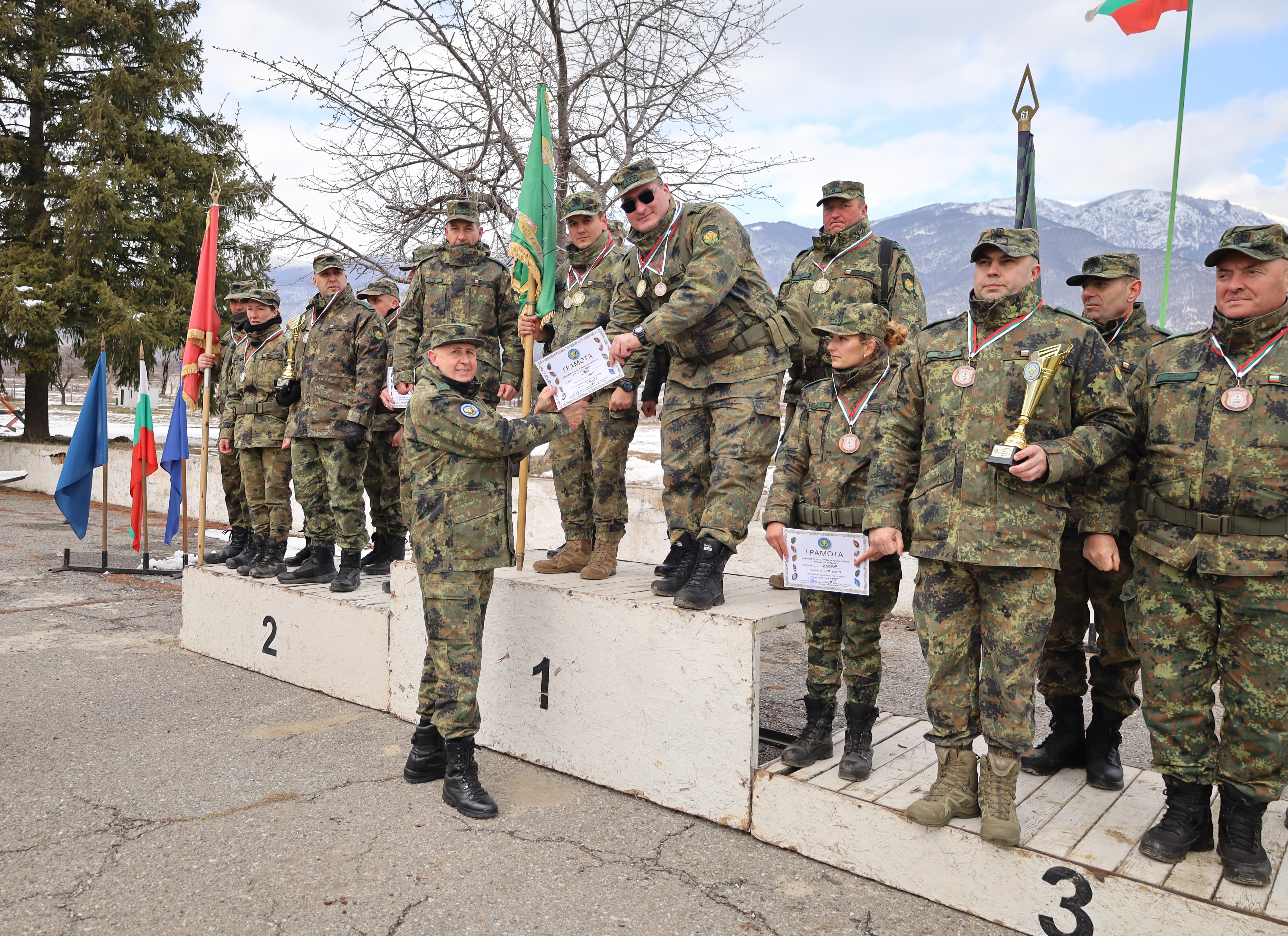 Командирът на 61-ва механизирана бригада бригаден генерал Маргарит Михайлов награди класиралите се на призовите места с купи, грамоти и медали.