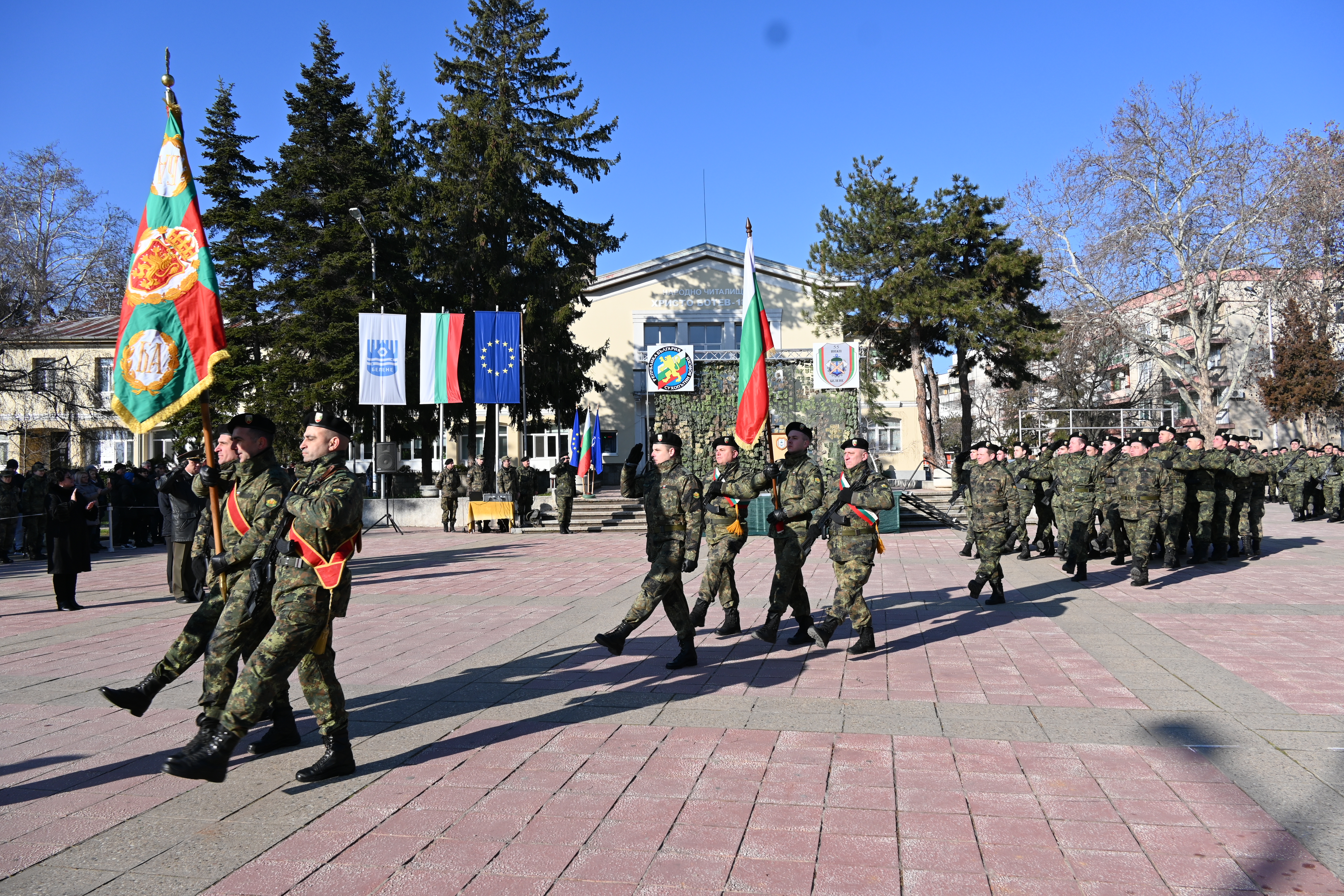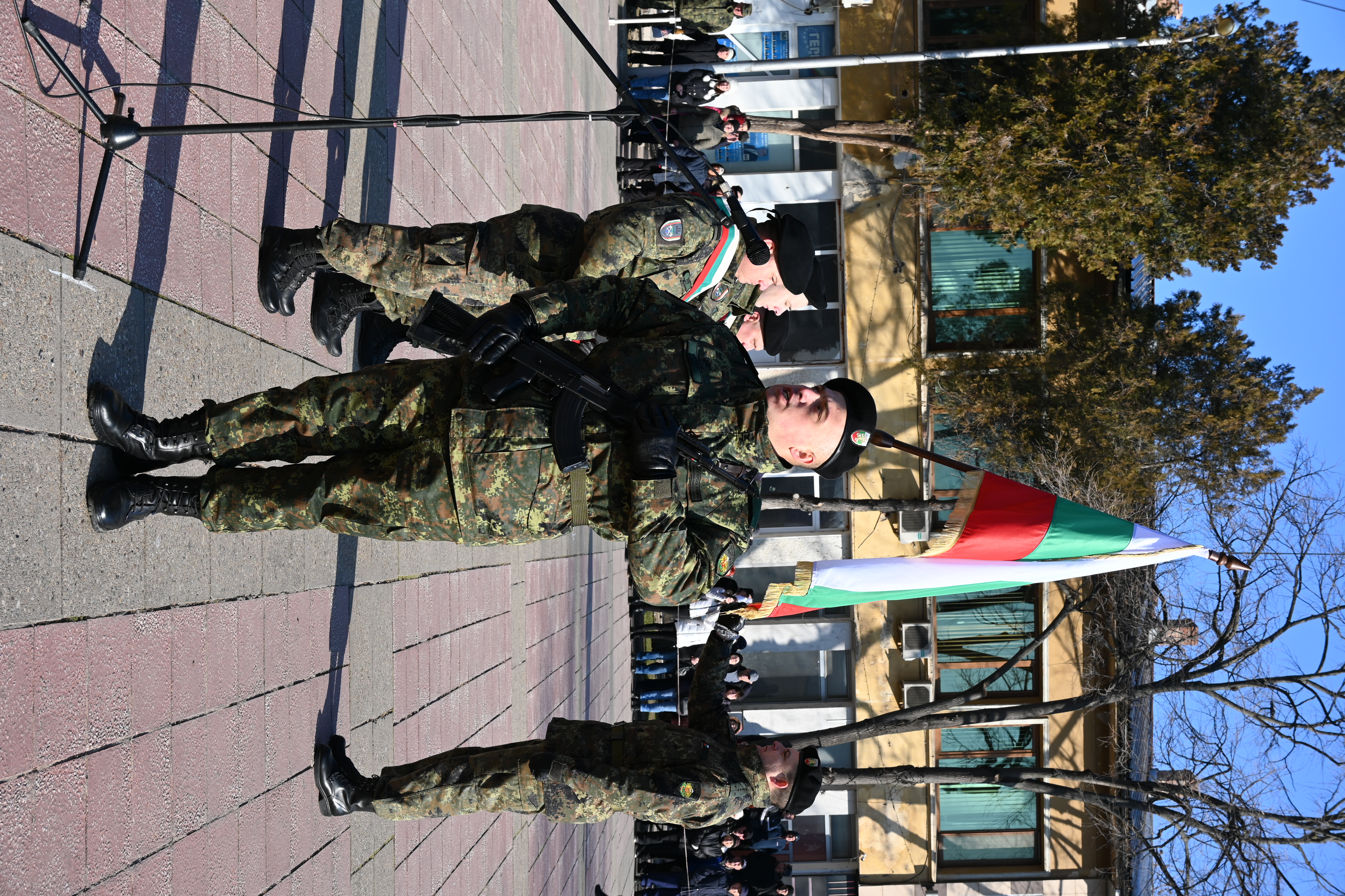 Командирите на военните формирования бригаден генерал Мирослав Костадинов, полковник Петко Петков и майор Иван Томов приветстваха младите войници и им напомниха за светостта на този незабравим ден.