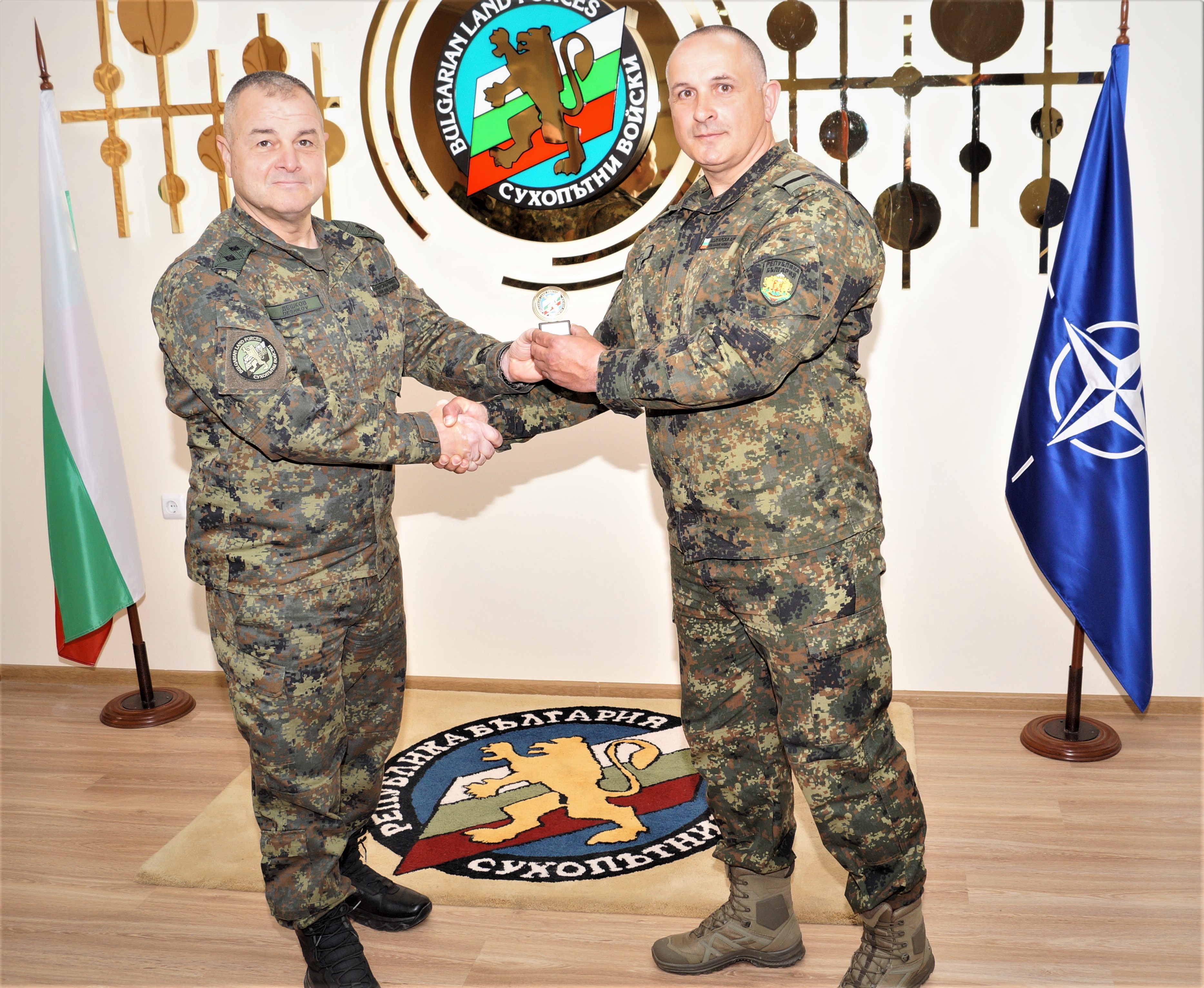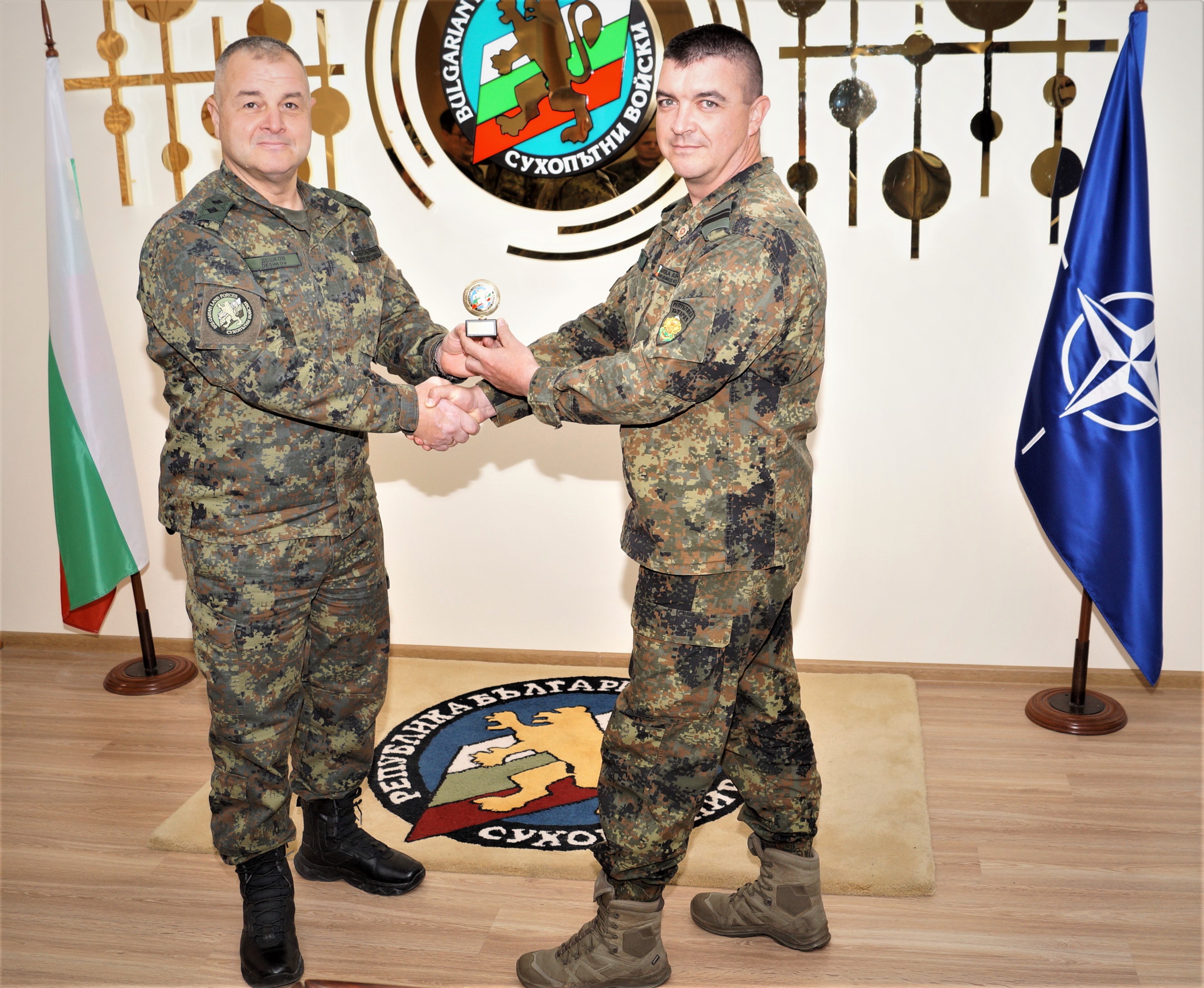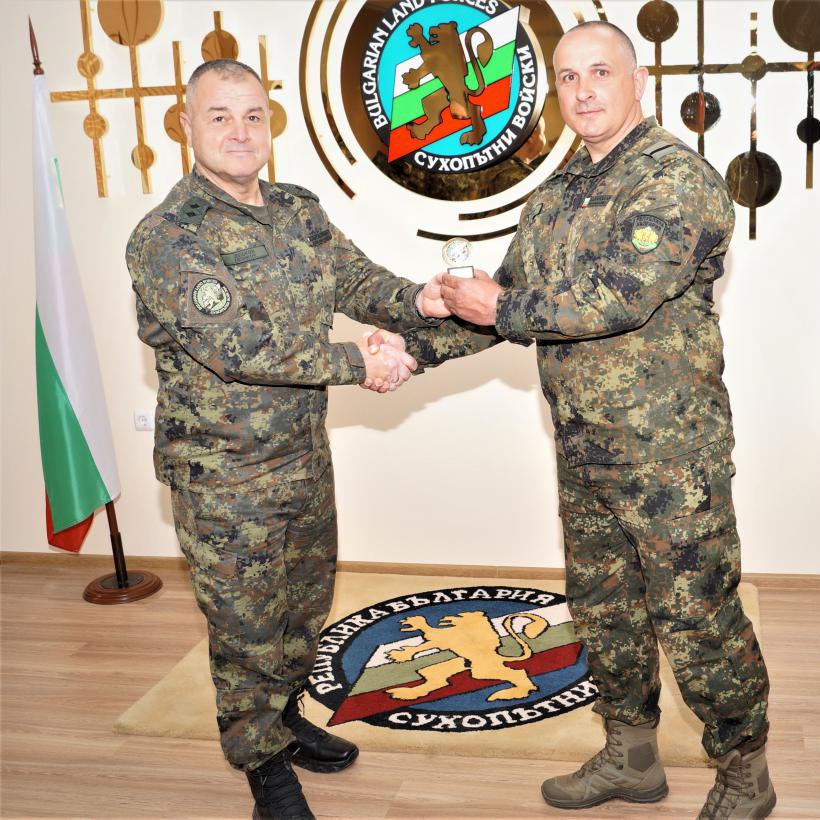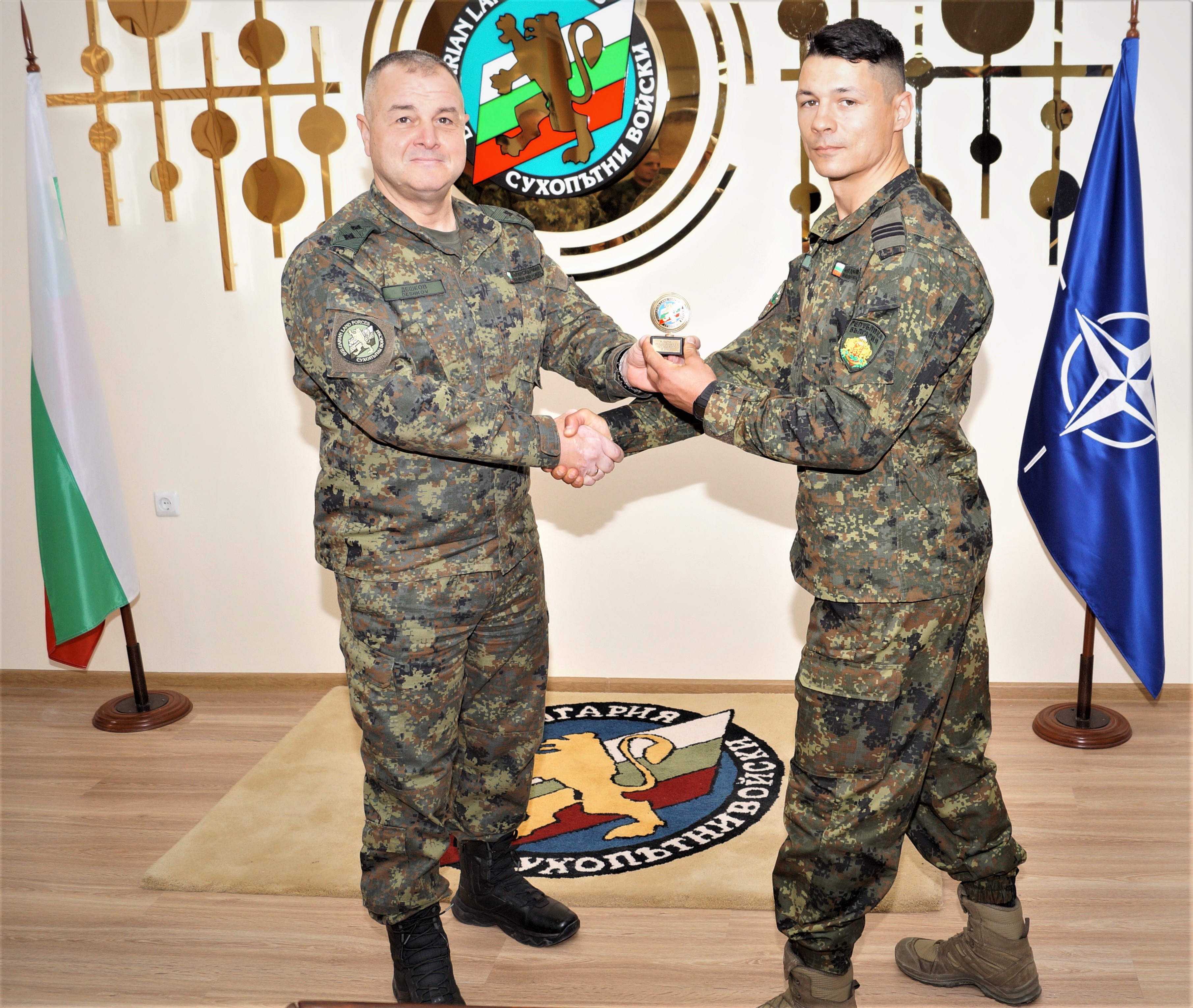 Командирът на Сухопътните войски генерал-майор Деян Дешков награди с предметни награди старшина Деян Мадин, старши сержант Евгени Савов, сержант Димитър Демирев и младши сержант Ивайло Бонев от 2-ра Тунджанска механизирана бригада.