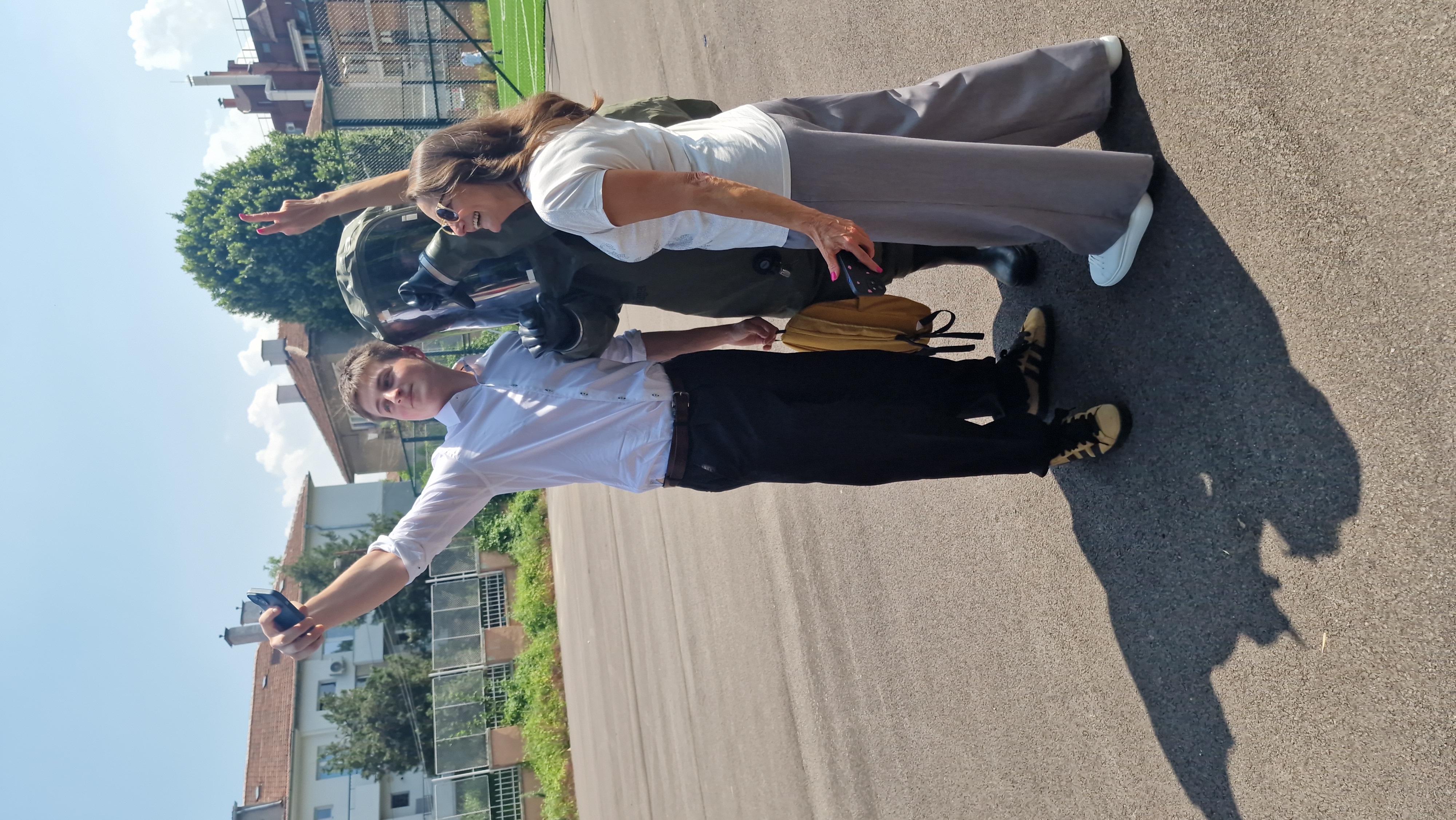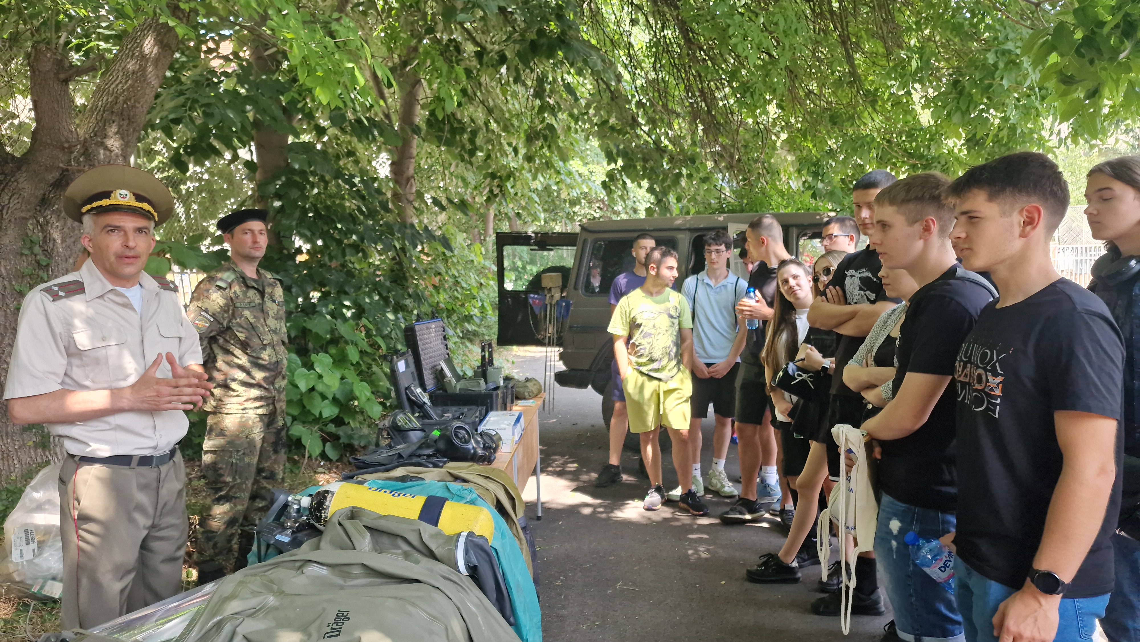 В двора на гимназията, над 200 ученици заедно със своите преподаватели наблюдаваха показ и демонстрация на специална бойна техника, прибори за разузнаване, защитно облекло и въоръжение.