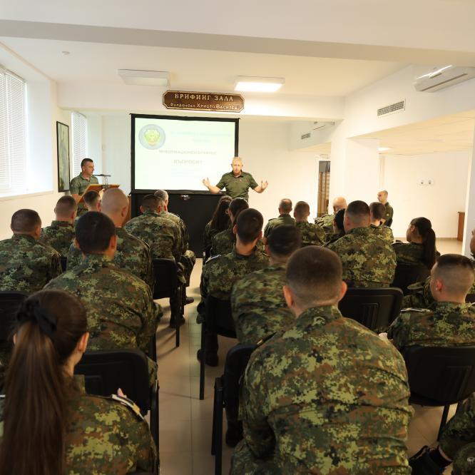 Гостите бяха посрещнати от командира на формированието бригаден генерал Маргарит Михайлов. На брифинг се запознаха с историята на бригадата, нейната структура, мисии и задачи.