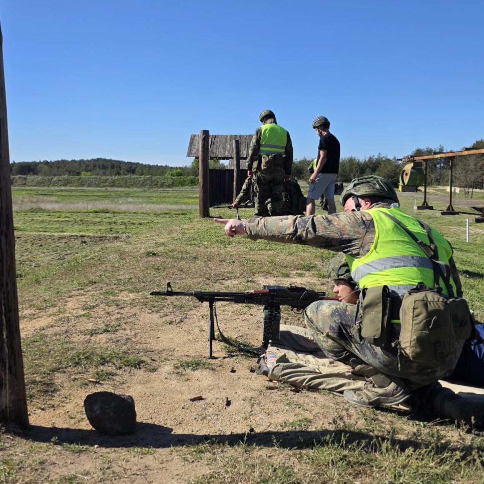 Учениците стреляха с пистолет „Макаров“, автомат и картечница, след усвояване на мерките за безопасност и материалната част на стрелковото оръжие.