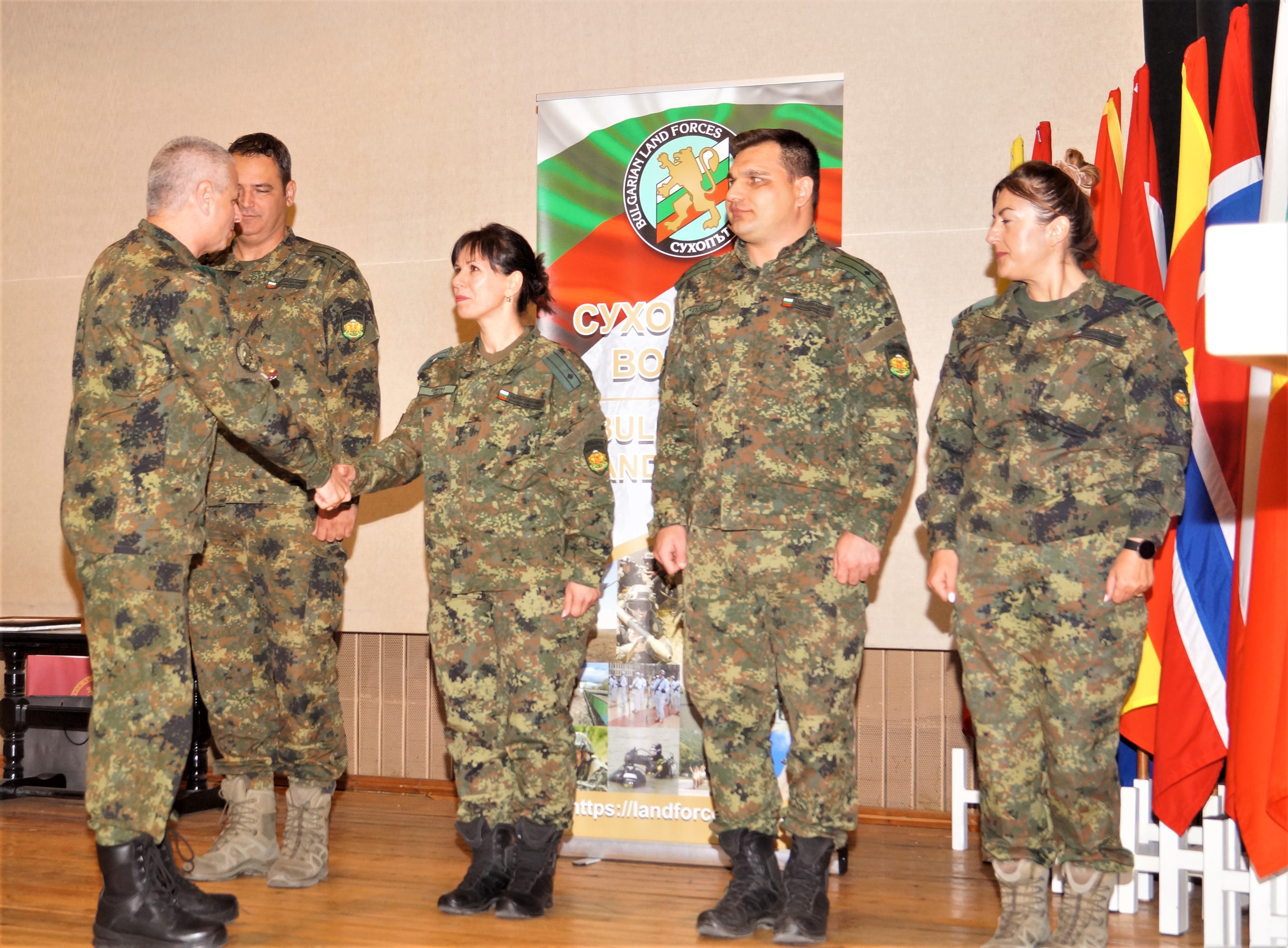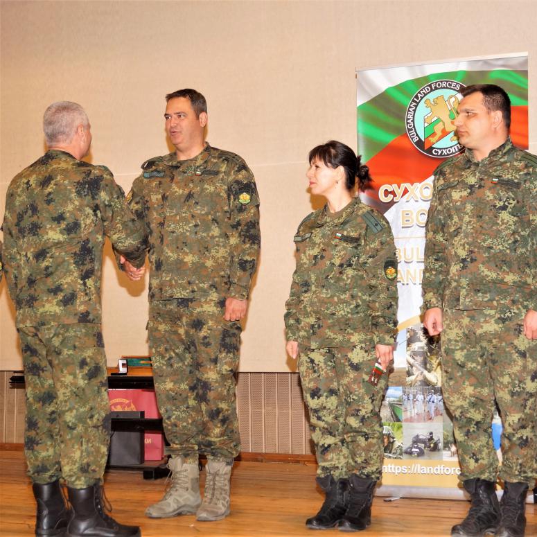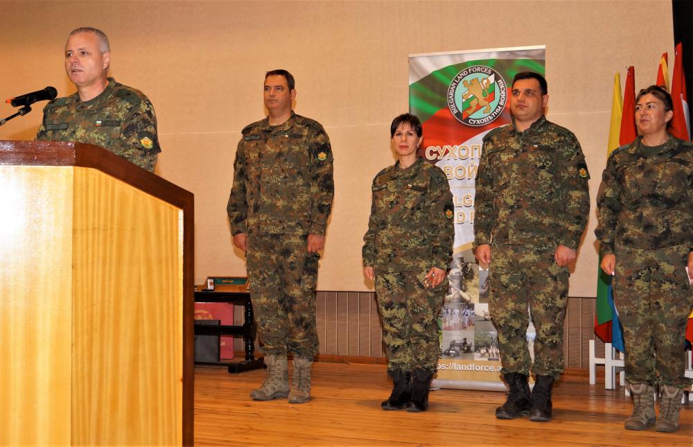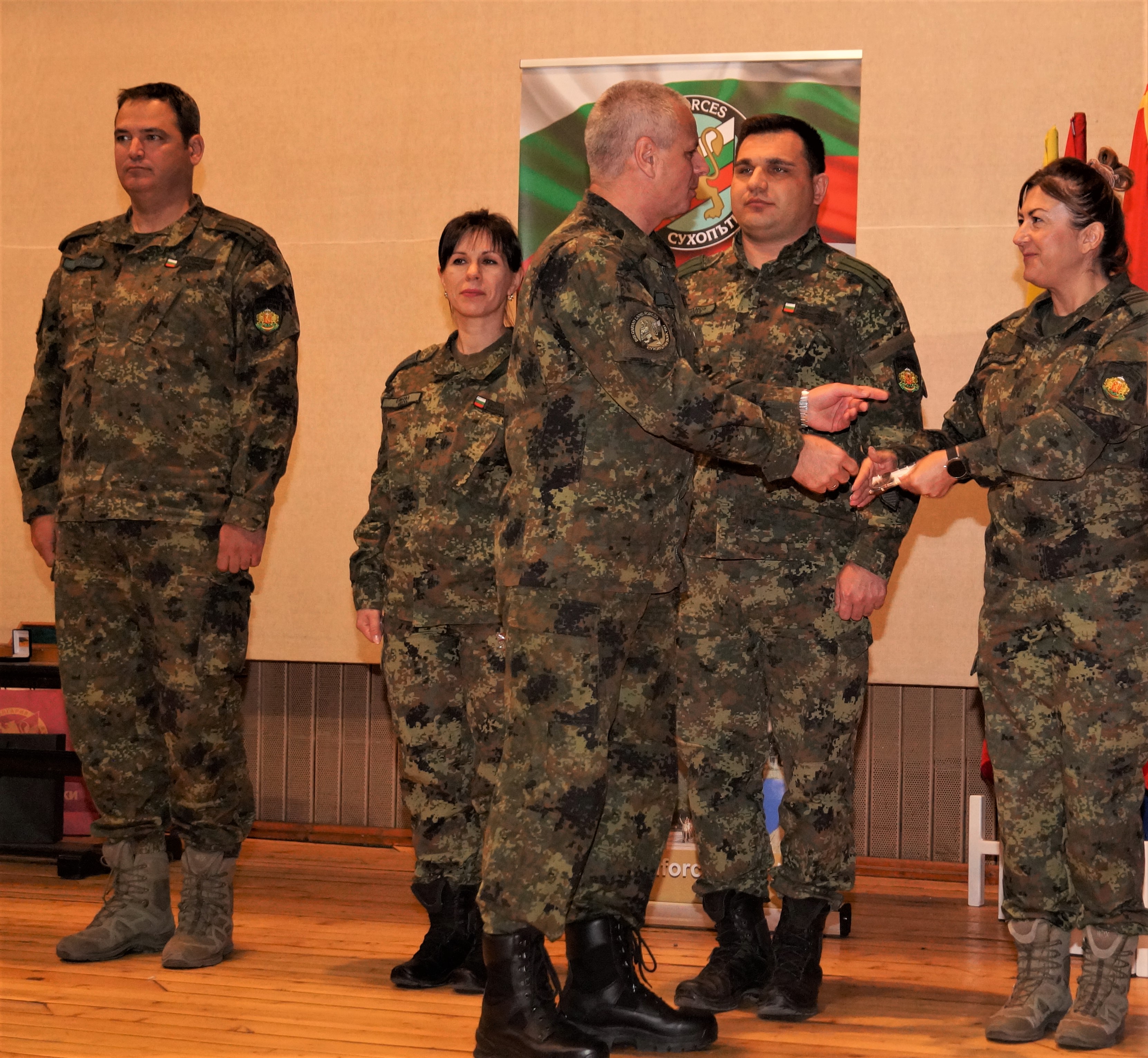 От името на командира на Сухопътните войски генерал-майор Деян Дешков, началникът на Щаба на Сухопътните войски бригаден генерал Стоян Шопов връчи пагоните и нагръдния знак на Командването на Сухопътните войски и пожела успех на военнослужещите.
