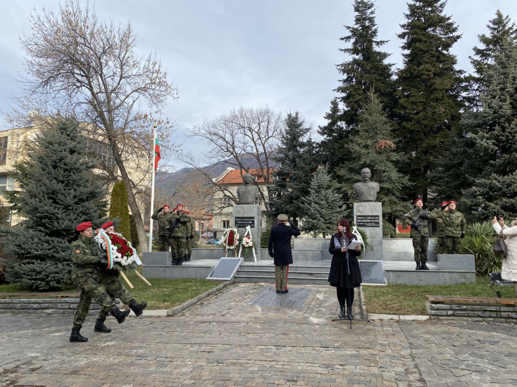 Днес, 3 януари, в град Сопот, военнослужещи и военният духов оркестър на 61-ва Стрямска механизирана бригада, oт състава на Сухопътните войски, взеха участие в тържествен ритуал по полагане на венци и цветя по повод 165 години от рождението на генерал-лейтенант Георги Вазов.