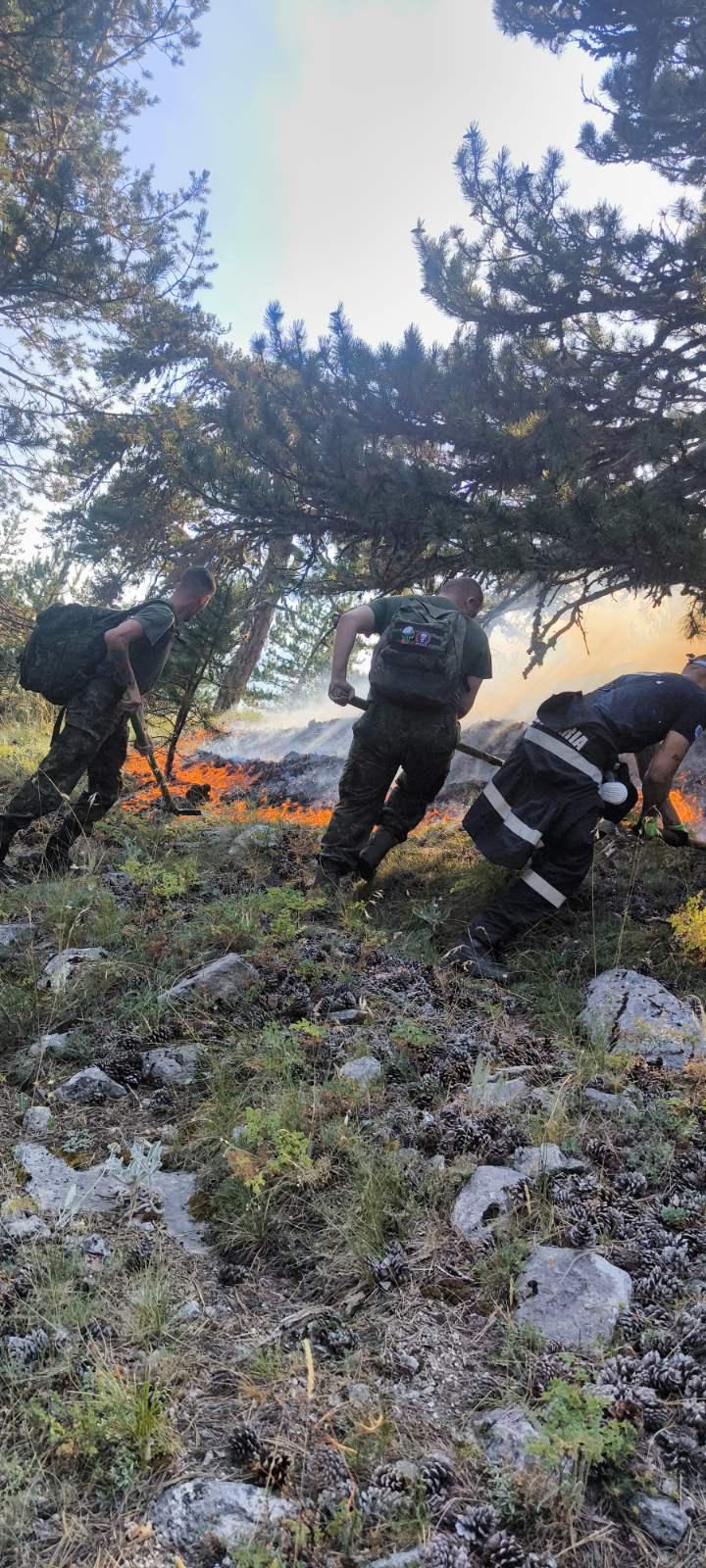 Продължават действията и на военнослужещите от 3-ти механизиран батальон на 3-то бригадно командване, Благоевград в гасенето на пожара в Пирин. На терен са 20 военнослужещи с 4 единици техника.