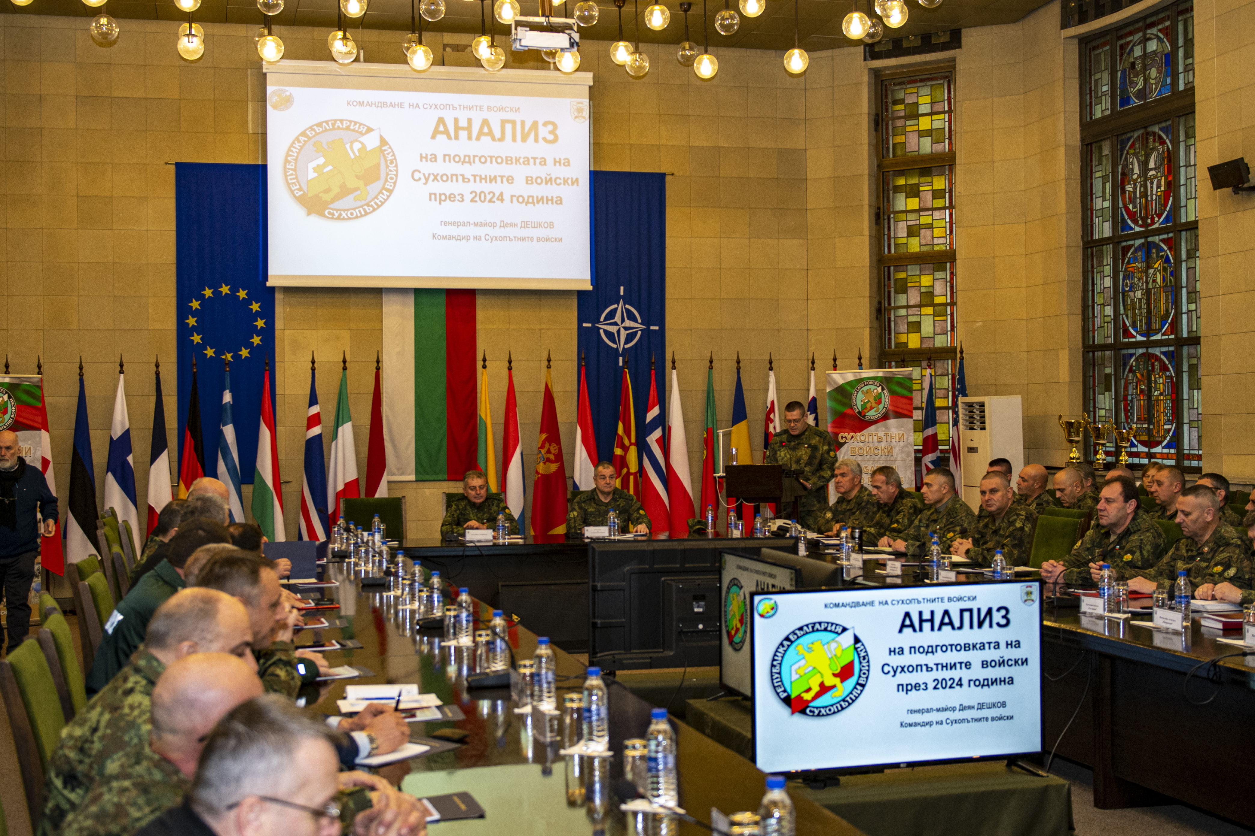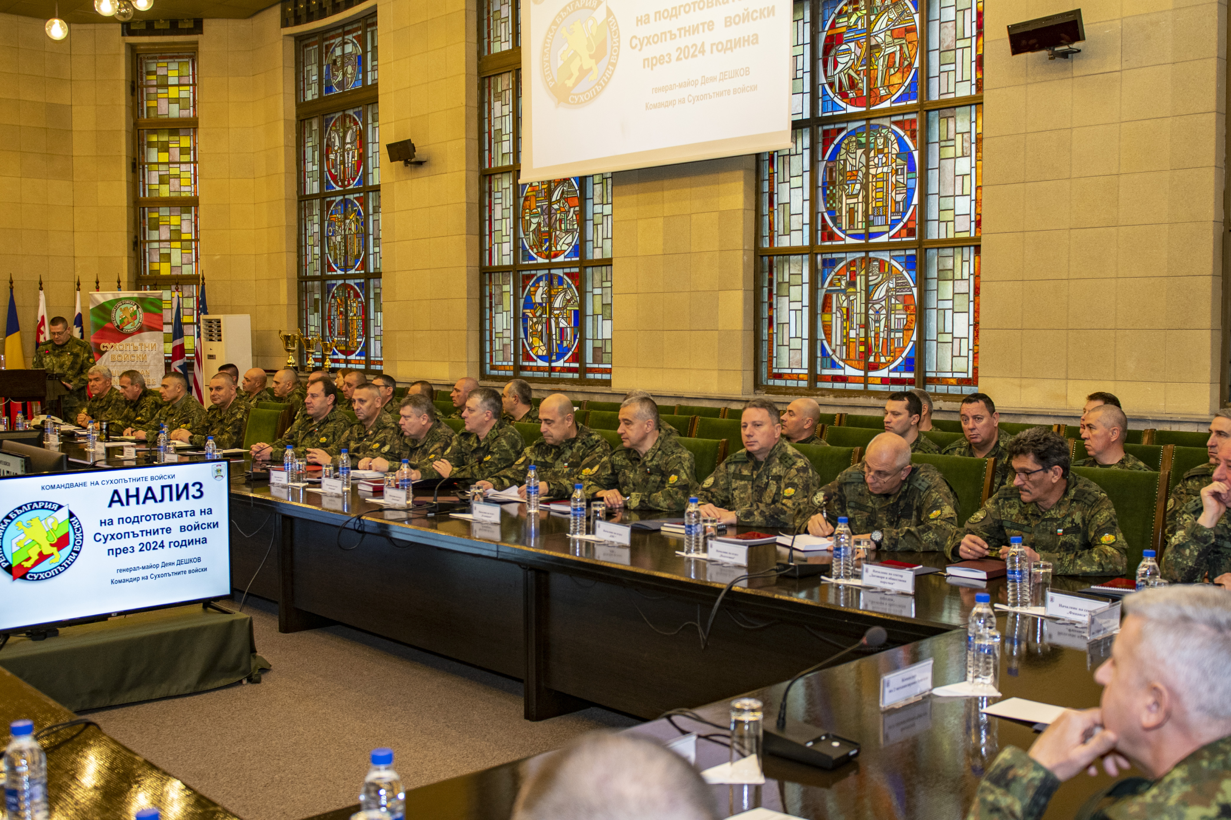 „Всички виждаме, че през последните години средата за сигурност става все по-комплексна и по-конкурентна, характеризираща се с нарастваща динамика и усложняване на дестабилизиращите процеси, не само в глобален, но и в регионален мащаб. Предизвикателствата пред въоръжените сили на Република България и в частност – Сухопътните войски, са породени не само от скоростно променящите се характер и мащаб на заплахите, но и от обусловените от тях нови изисквания за способности на силите, като част от системата за колективна отбрана и сигурност на НАТО и Европейския съюз.“ – с тези думи командирът на Сухопътните войски генерал – майор Деян Дешков откри Анализа на подготовката на Сухопътните войски през 2024 г.