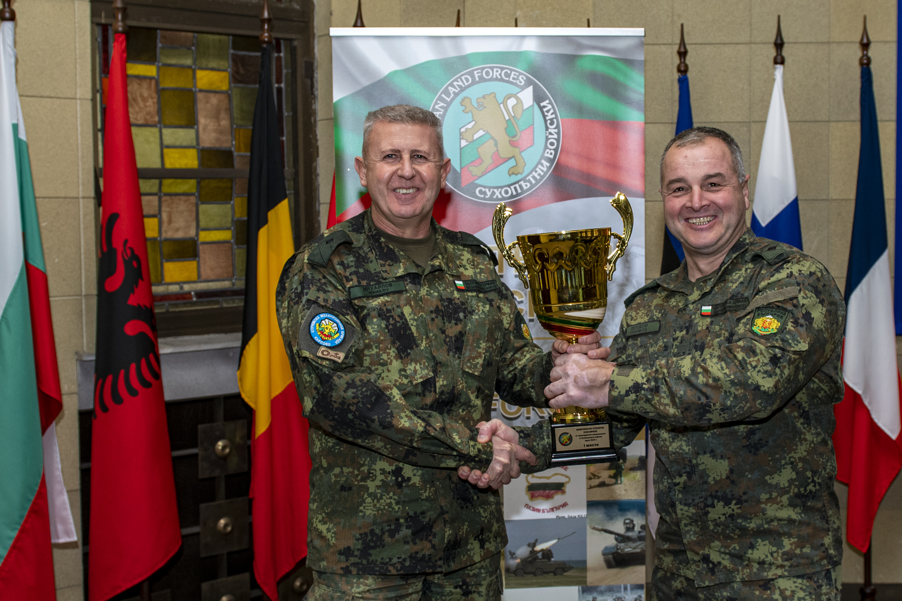 В края на Анализа генерал-майор Дешков награди с купи и грамоти победителите в комплексното класиране от проведените военни шампионати в Сухопътните войски през 2024 година.