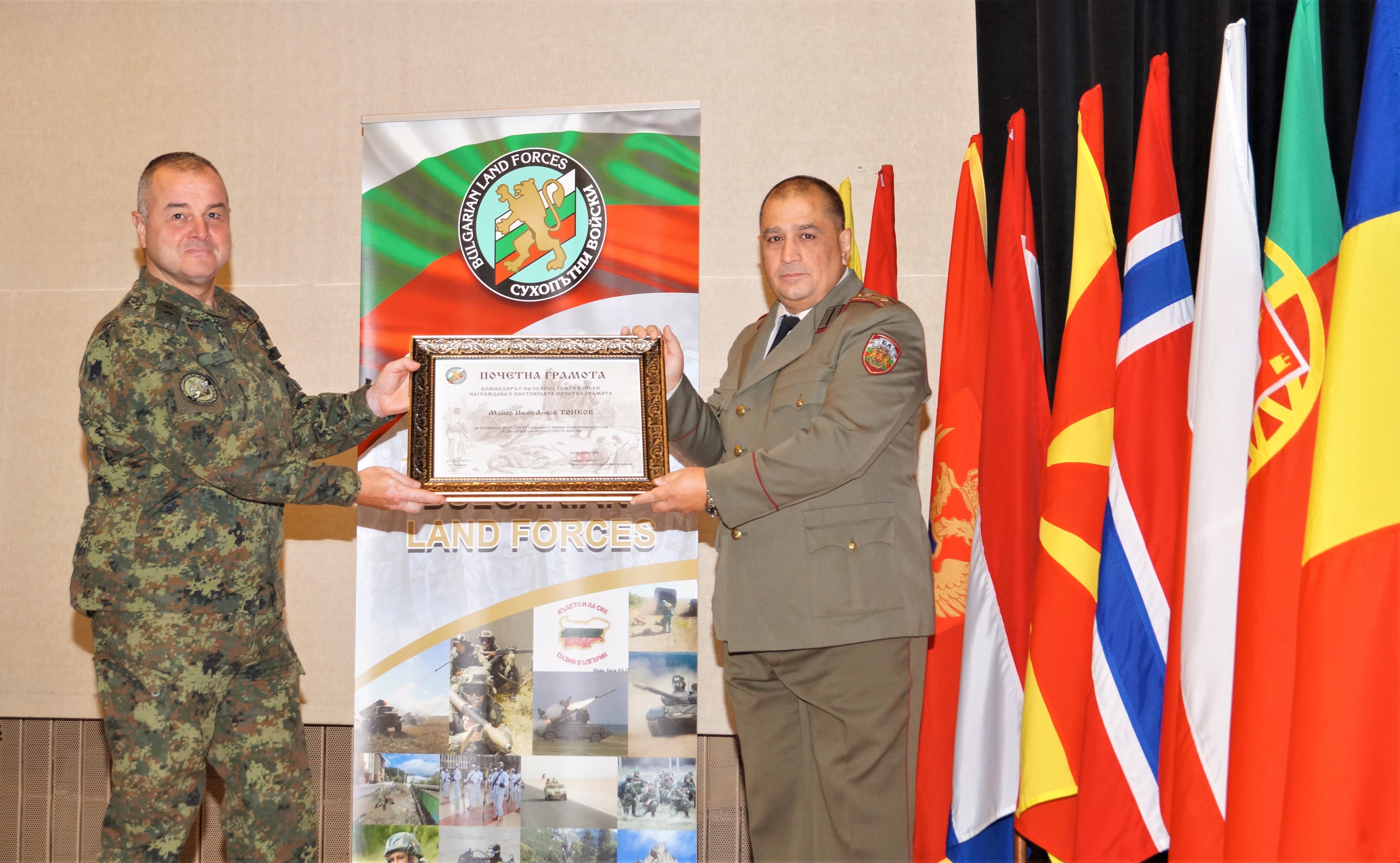 След всички години, изцяло посветени на Сухопътни войски, нека удовлетворението от правилния избор, от достойно и честно извървения път в редиците на Българската армия не Ви напуска, господин майор Тонков.
