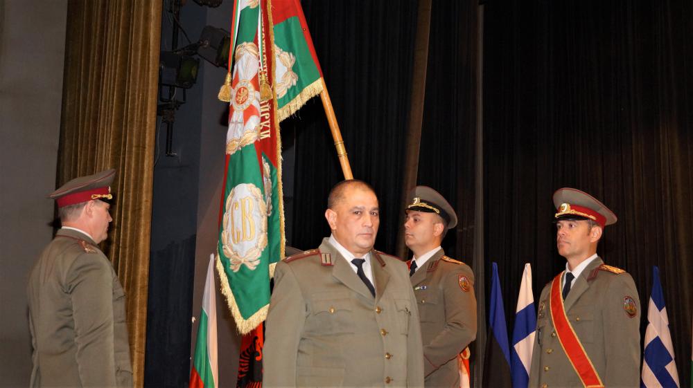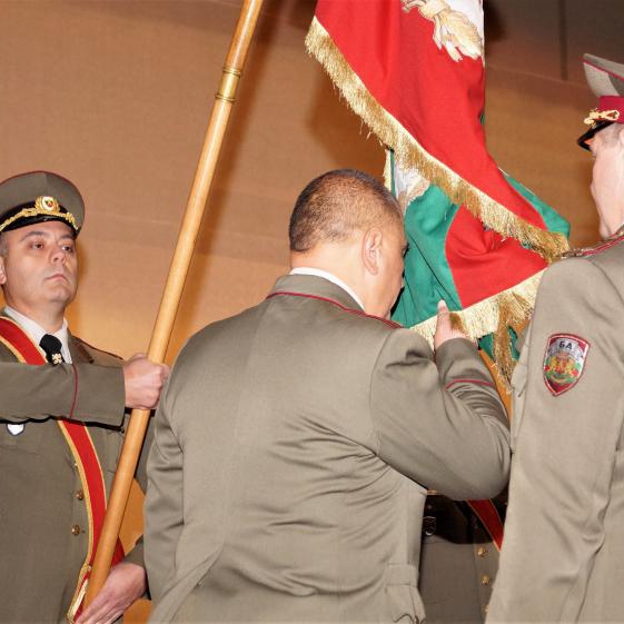 Майор Тонков целуна бойното знаме, след което се обърна към своите командири и колеги с думите: „Искам да благодаря на Ръководството и на всички вас за дългогодишната ни съвместната работа“!