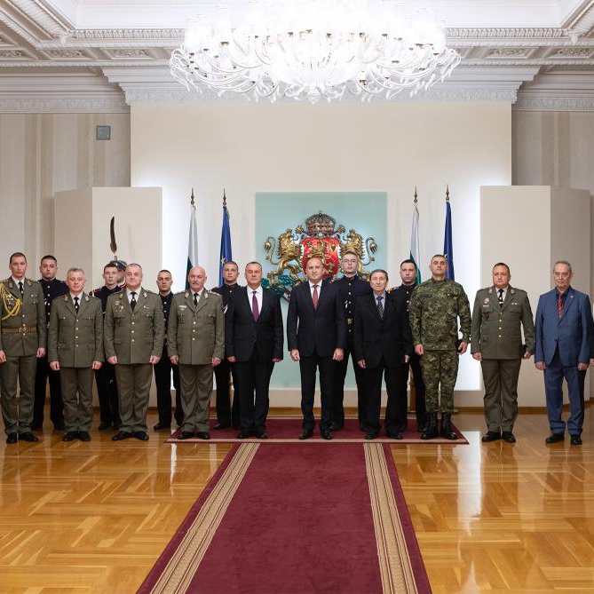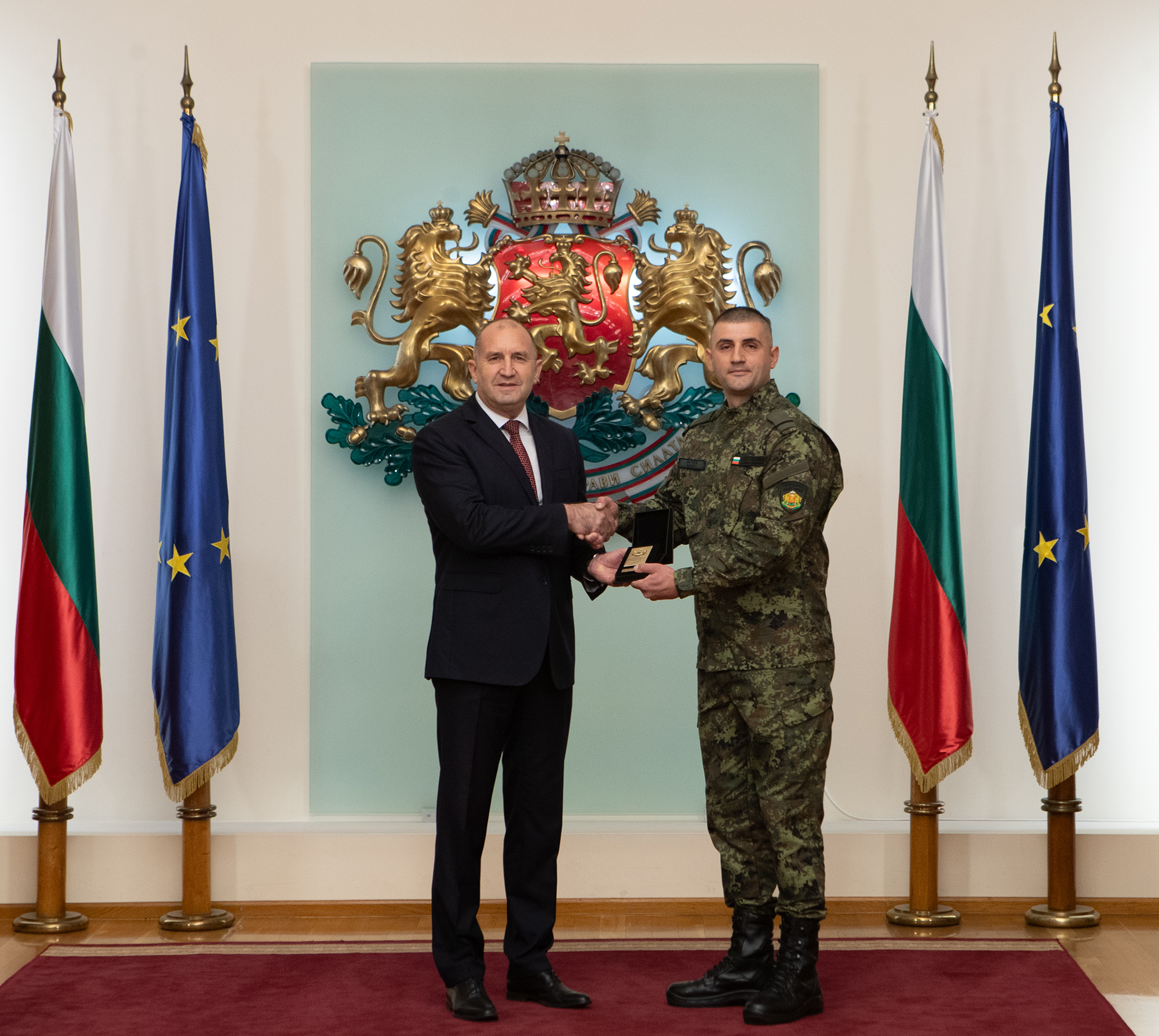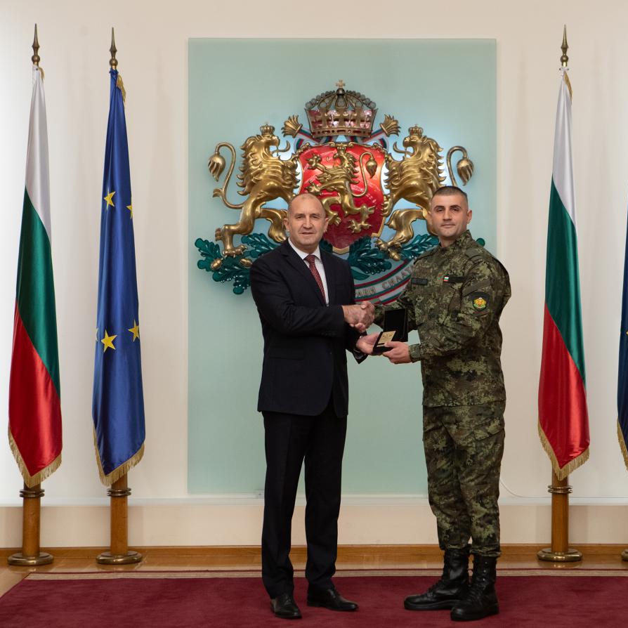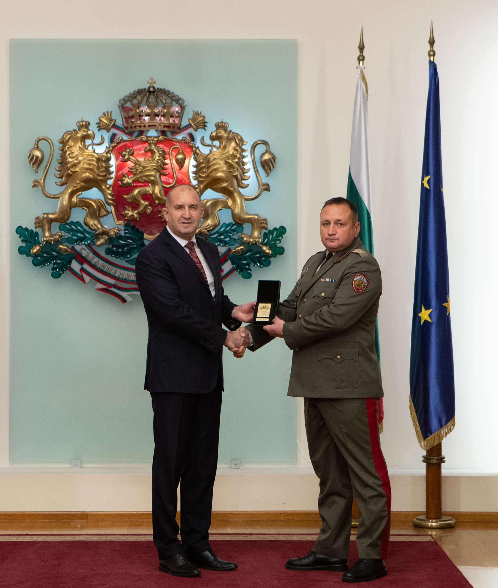 Президентът и върховен главнокомандващ на Въоръжените сили на Република България Румен Радев награди с Почетния знак на президента за значимия им принос към националната сигурност в мирно време и по повод бойния празник на Сухопътните войски – 19 ноември: